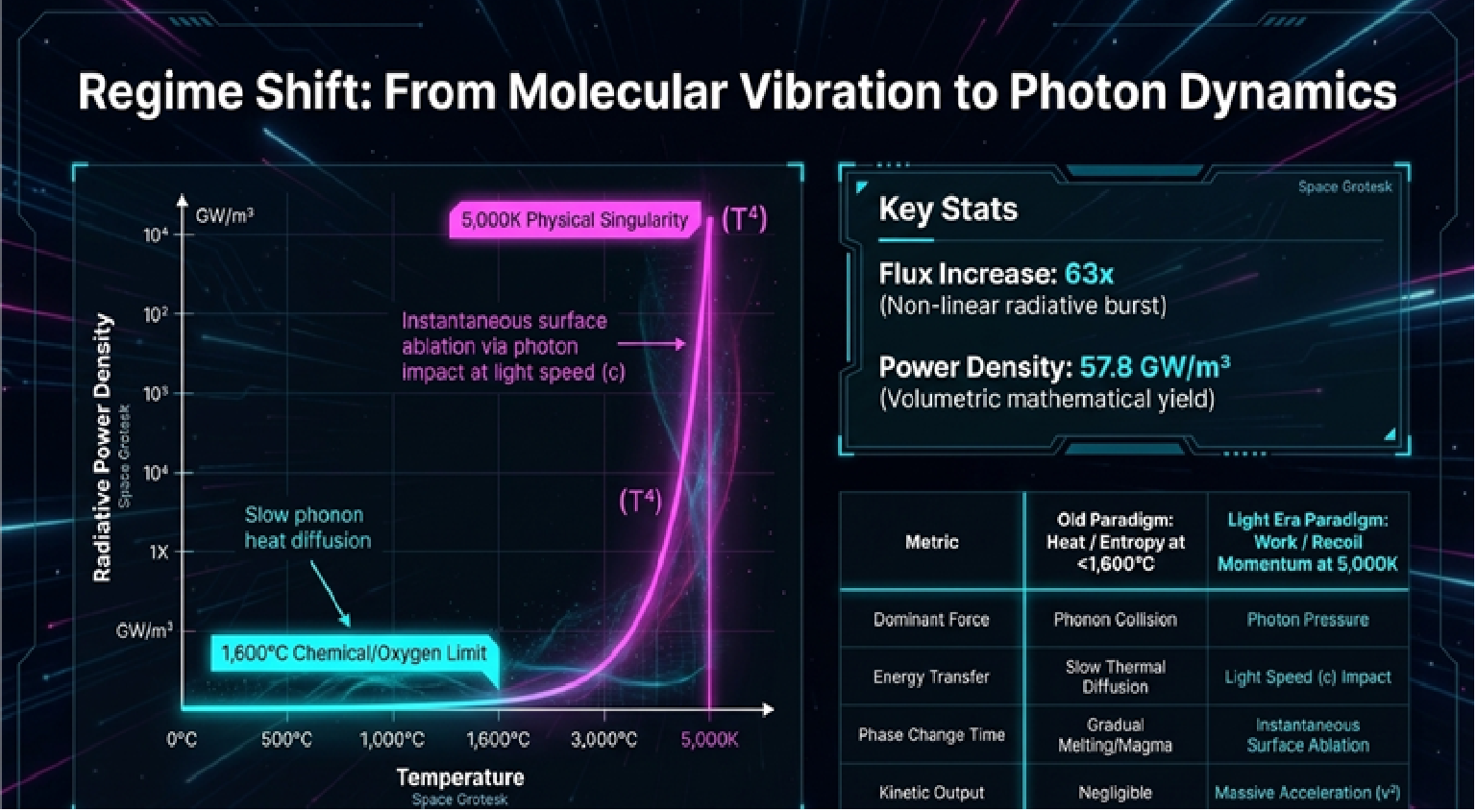 A fundamental shift from linear thermodynamics to nonlinear radiative dynamics. Beyond the 1,600°C ceiling.