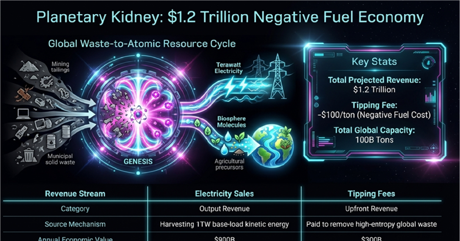 Transforming annual waste into $1.3 Trillion of civilizational assets through negative fuel costs and total resource recovery.